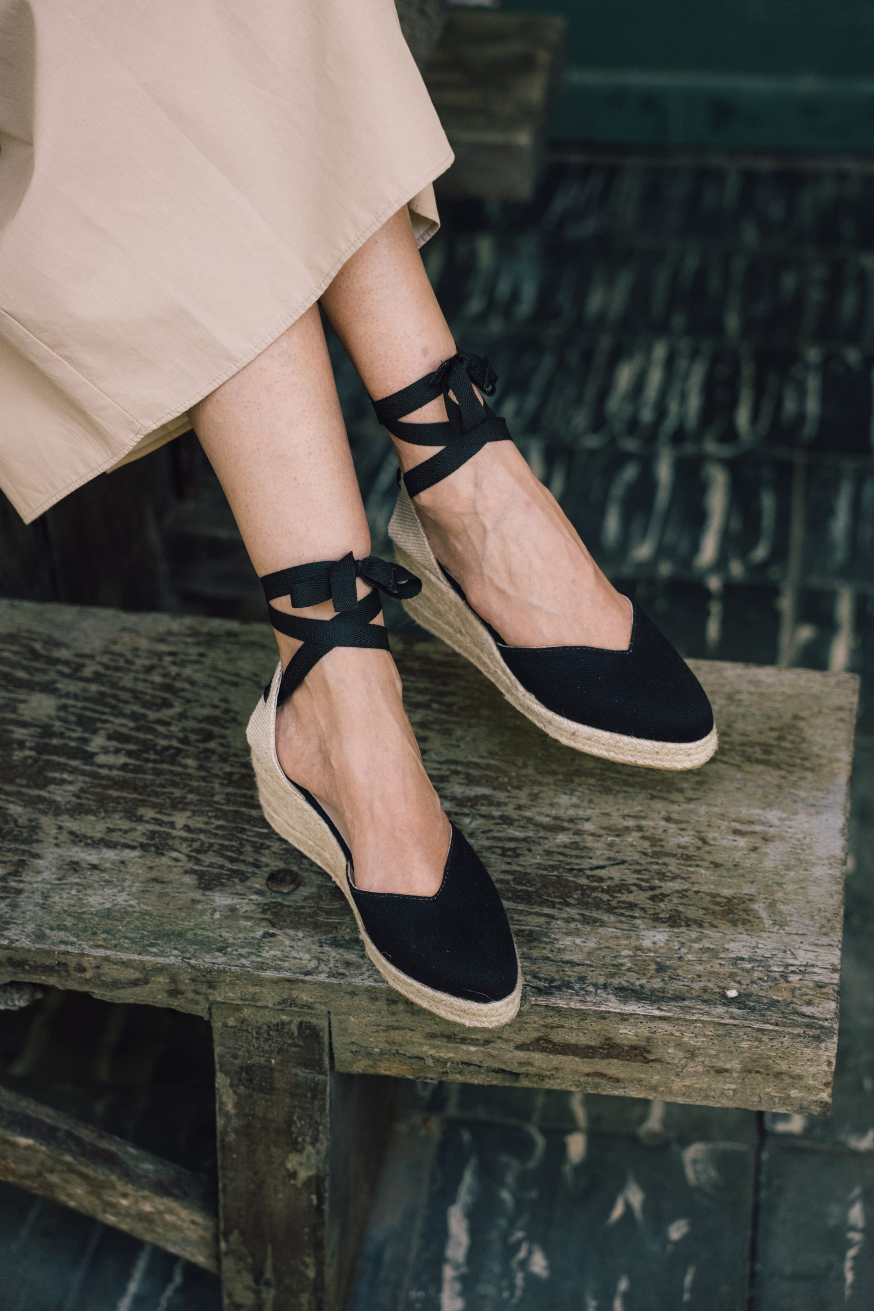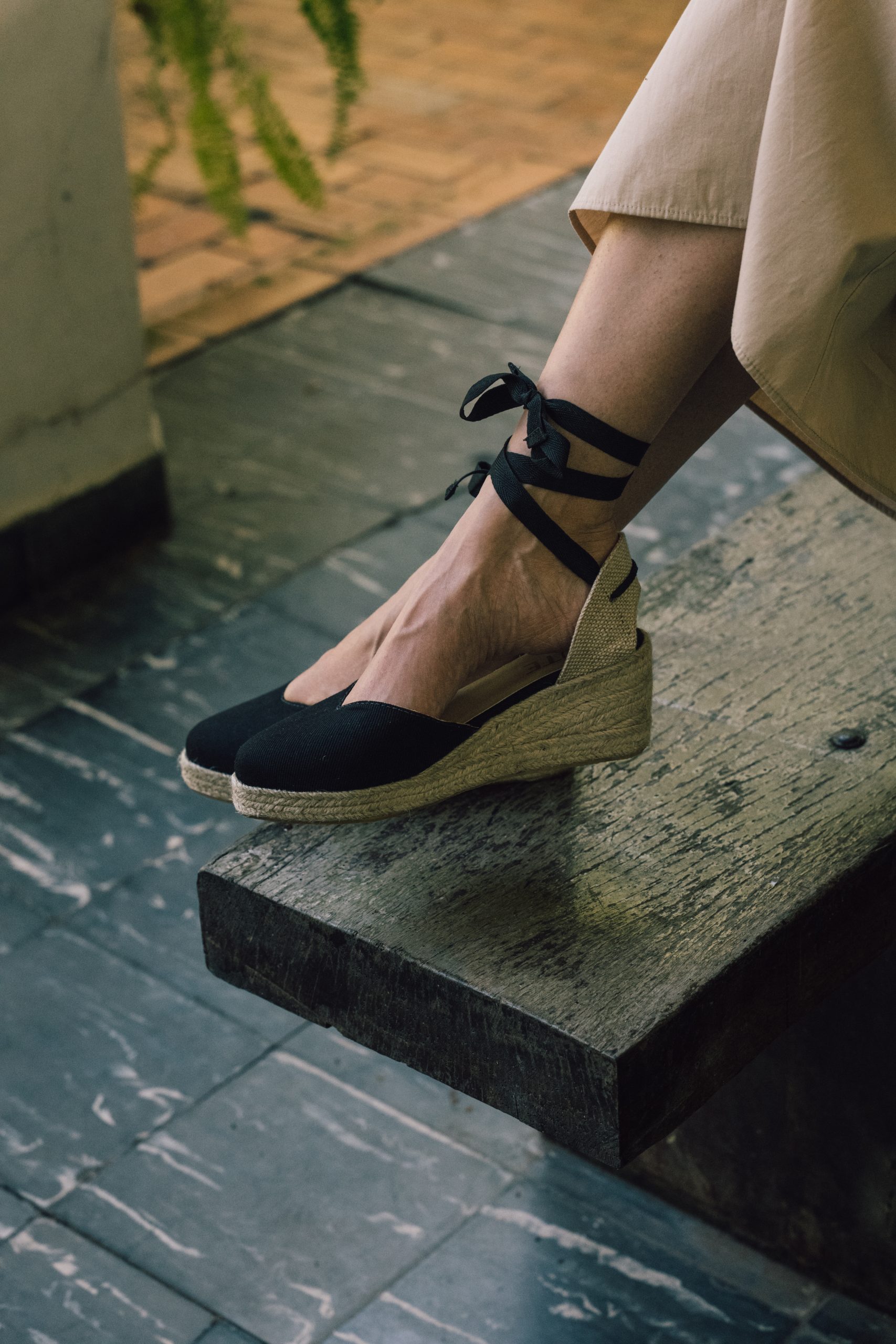 Base de yute natural, capellada en V y diseño que estiliza la silueta de forma simple. En tono noir, una versión neutra y fácil de combinar.