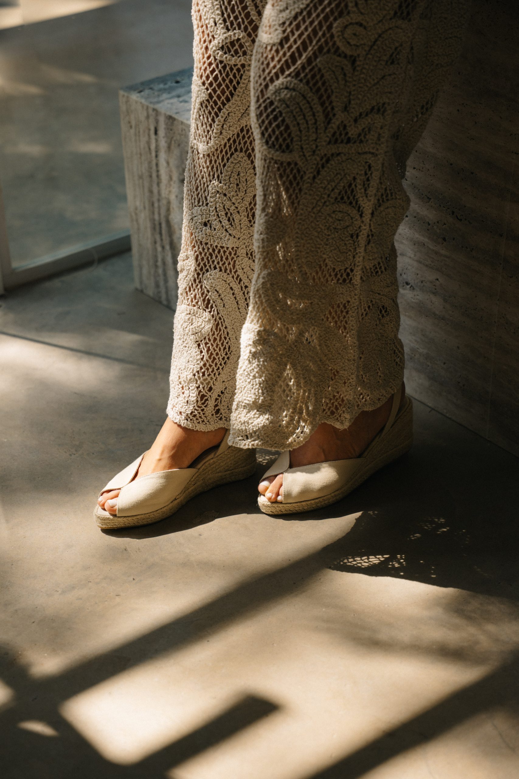 Sencillez que enamora. Cecilia refleja la esencia de la alpargata artesanal: líneas limpias, costuras hechas a mano y una plataforma cómoda de 7 cm que acompaña cualquier estilo.