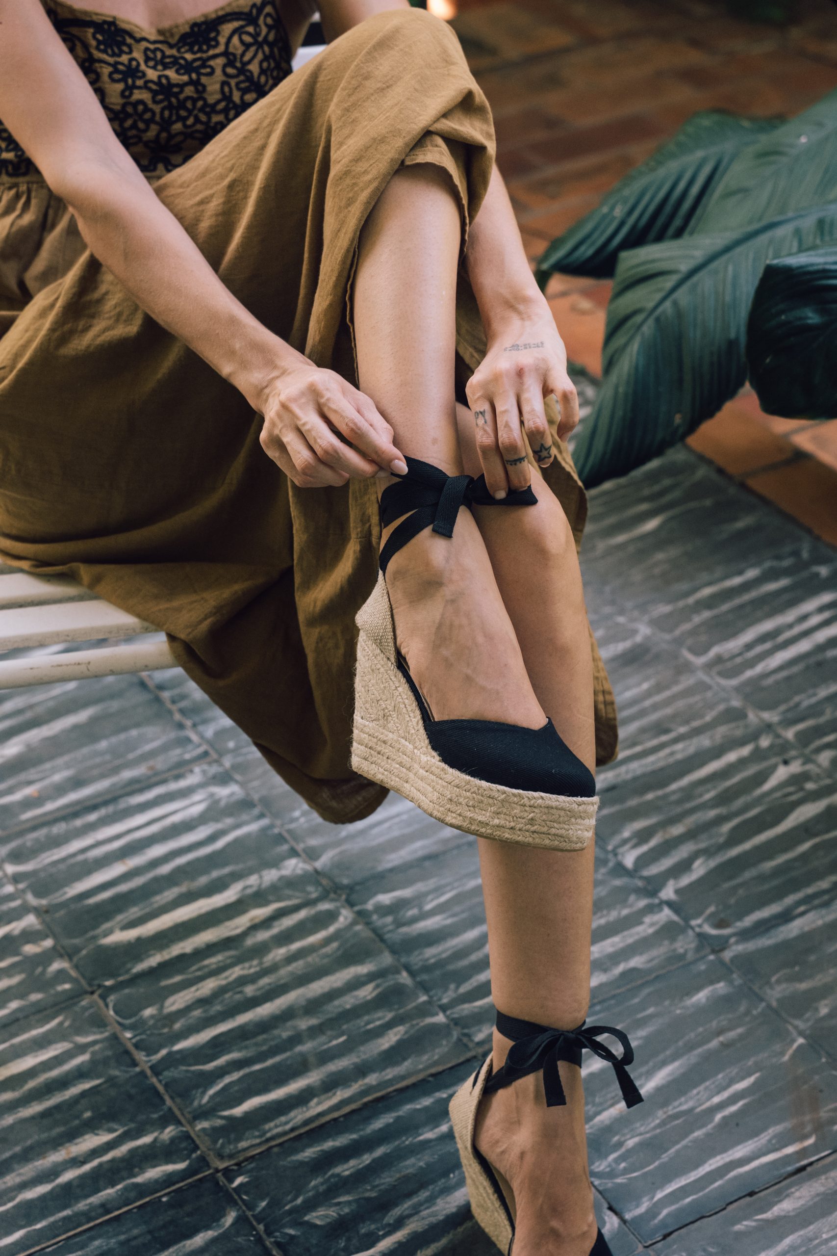Con base de yute natural y plataforma de 13 cm, Gemma Noir se presenta en su versión más neutra, con una silueta que estiliza de forma equilibrada y firme.