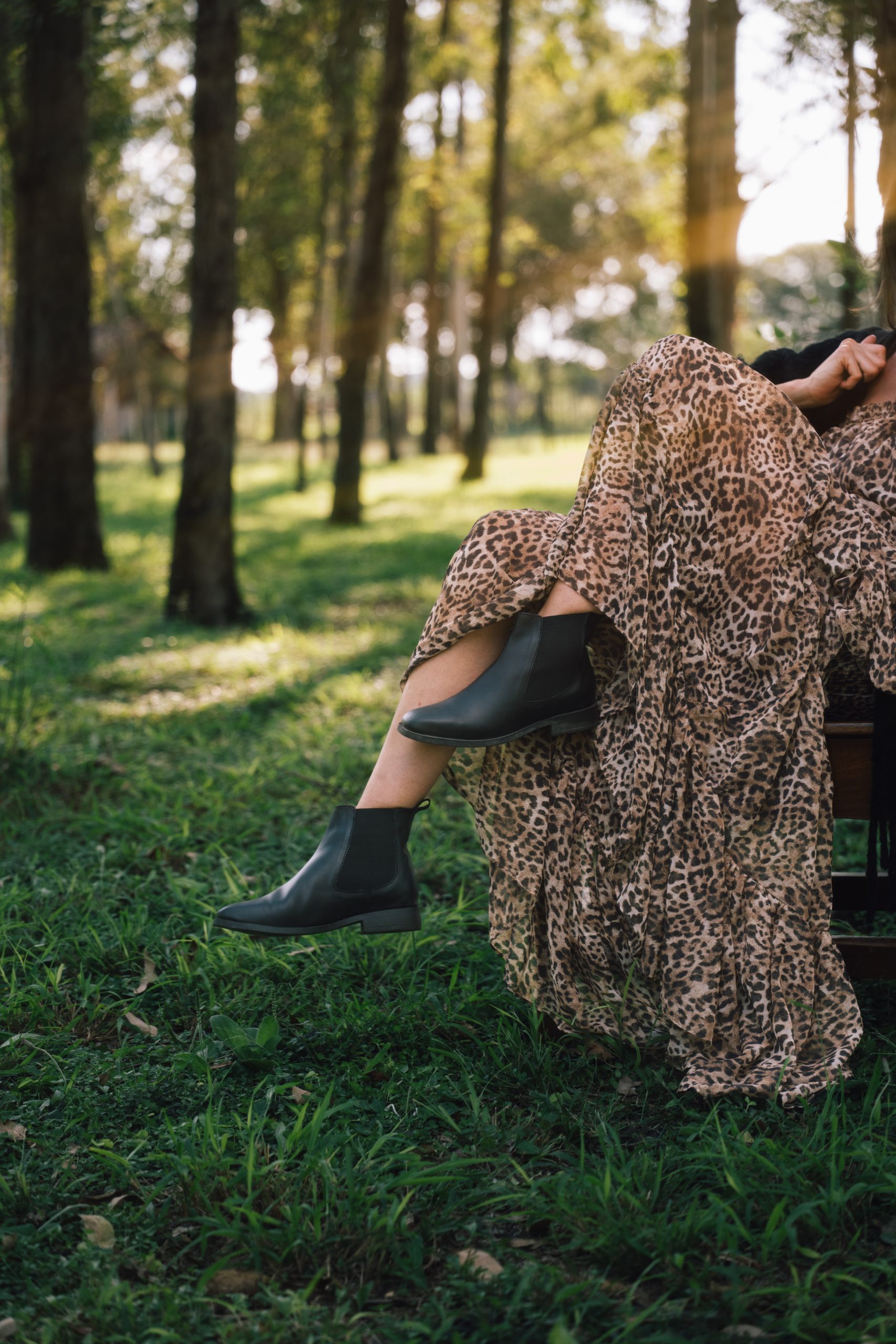 Bota corta en cuero 100% legítimo, de líneas limpias y silueta simple. Diseño al tobillo con laterales elásticos que facilitan el calce y aportan ajuste cómodo. En tono negro, una opción versátil y funcional para el uso diario.